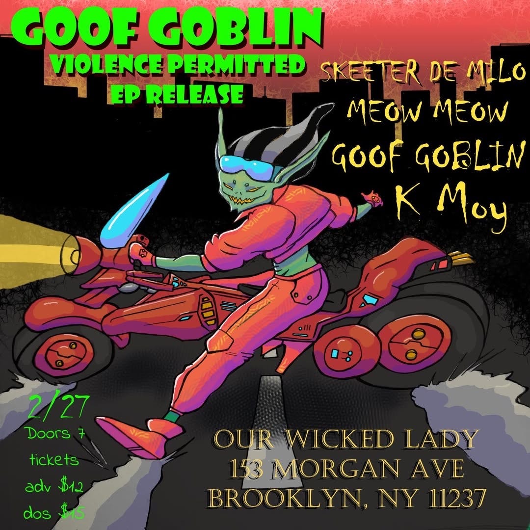 We’re playing at Our Wicked Lady on February 27th in support of Goof Goblin’s EP release.